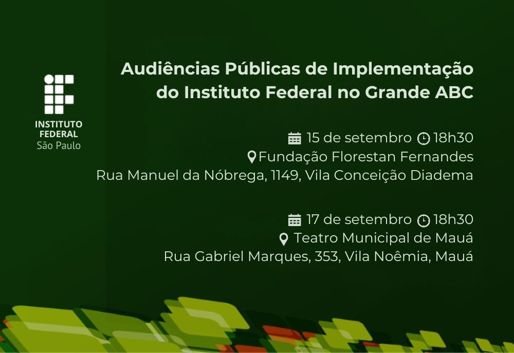 Grande ABC realiza segunda rodada de audiências públicas para instalação do Instituto FederalGrande ABC realiza segunda rodada de audiências públicas para instalação do Instituto Federal