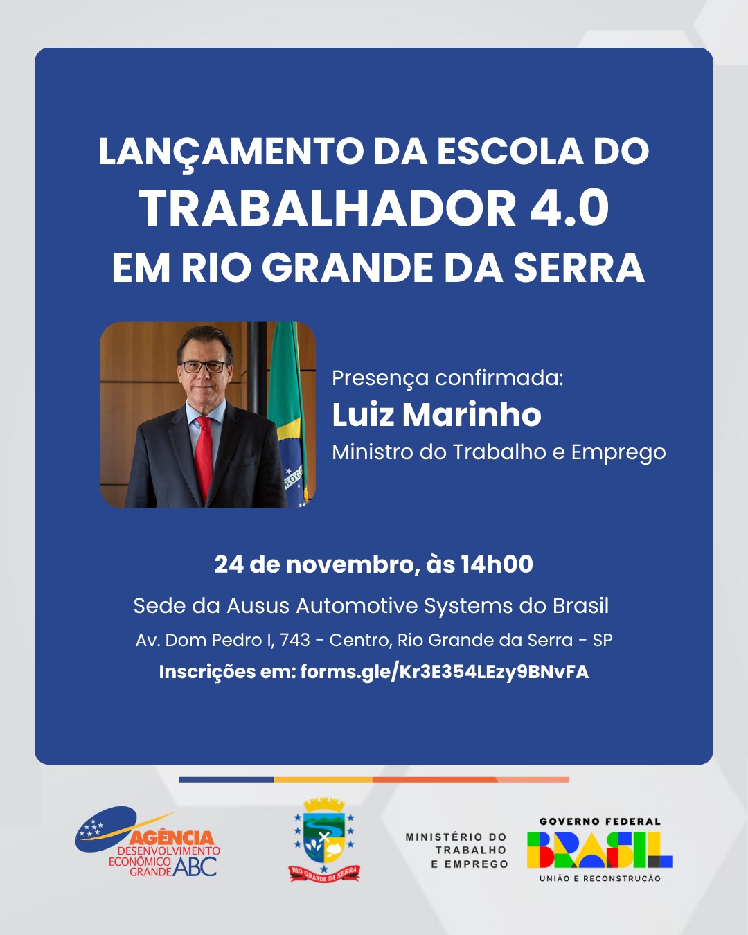 Rio Grande da Serra lança Escola do Trabalhador 4.0 com a presença do ministro Luiz MarinhoRio Grande da Serra lança Escola do Trabalhador 4.0 com a presença do ministro Luiz Marinho 19 de novembro de 202519 de novembro de 2025 | Agência de Desenvolvimento Econômico Grande ABCAgência de Desenvolvimento Econômico Grande ABC | 0 comentários | 15:05 LEIA MAISLEIA MAIS