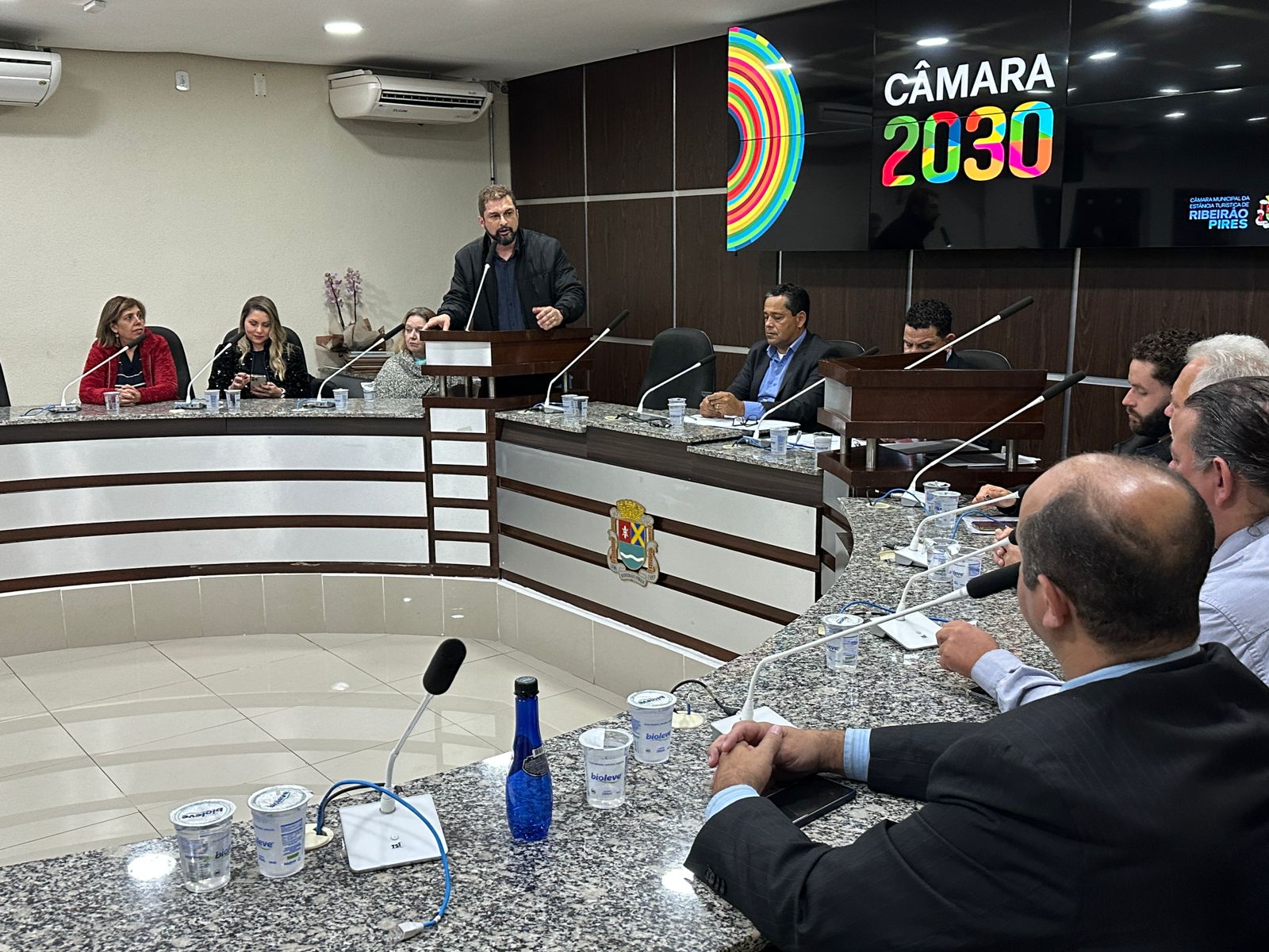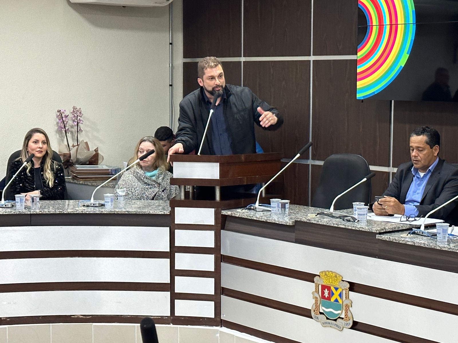 A sessão solene foi solicitada pelo vereador Diogo Manera, e presidida pelo presidente da Casa de Leis, Professor Paulo César, o PC.
