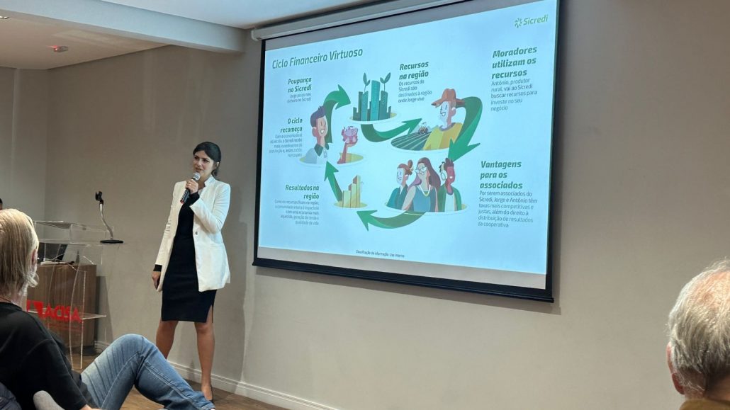 Após as apresentações, os representantes de empresas participaram de atendimentos individualizados com cada instituição financeira, com a oportunidade de aprofundar e detalhar suas demandas junto a cada parceiro.